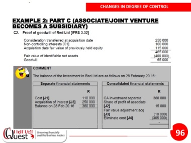 CHANGES IN DEGREE OF CONTROL EXAMPLE 2: PART C (ASSOCIATE/JOINT VENTURE BECOMES A SUBSIDIARY) 96