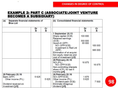 CHANGES IN DEGREE OF CONTROL EXAMPLE 2: PART C (ASSOCIATE/JOINT VENTURE BECOMES A SUBSIDIARY) 98