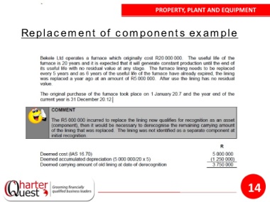 PROPERTY, PLANT AND EQUIPMENT Replacement of components example 14