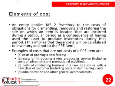 • Examples of costs that are not costs of a PPE item are: