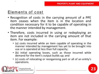 • Recognition of costs in the carrying amount of a PPE