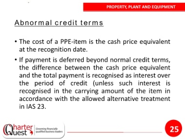 • The cost of a PPE-item is the cash price equivalent