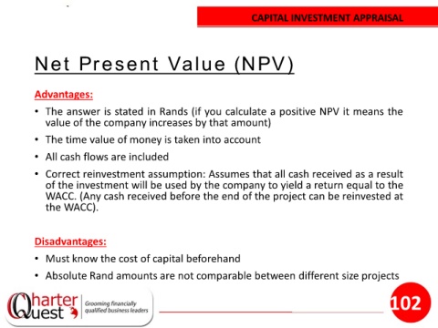 • The answer is stated in Rands (if you calculate a positive NPV it means the