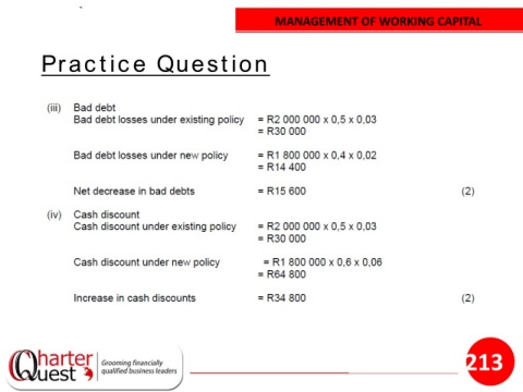 MANAGEMENT OF WORKING CAPITAL Practice Question 213