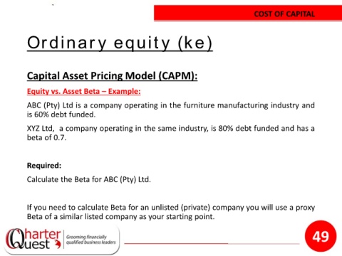 Calculate the Beta for ABC (Pty) Ltd.