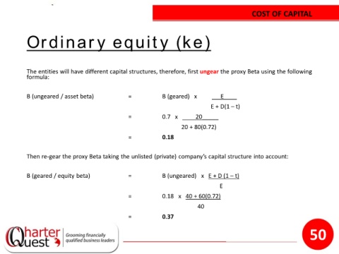Then re-gear the proxy Beta taking the unlisted (private) company’s capital structure into account: