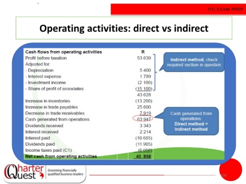 ITC EXAM PREP Operating activities: direct vs indirect 104