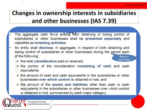 ITC EXAM PREP Changes in ownership interests in subsidiaries and other businesses (IAS 7.39) 129