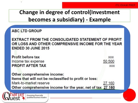 ITC EXAM PREP Change in degree of control(Investment becomes a subsidiary) - Example 132
