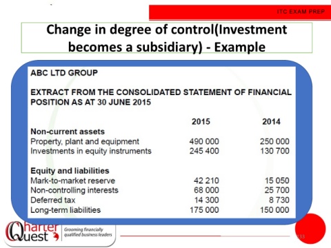 ITC EXAM PREP Change in degree of control(Investment becomes a subsidiary) - Example 133