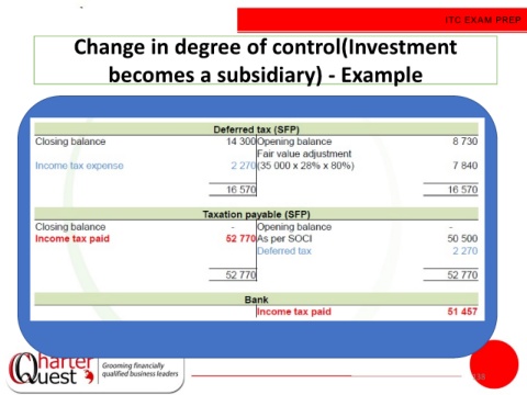ITC EXAM PREP Change in degree of control(Investment becomes a subsidiary) - Example 138