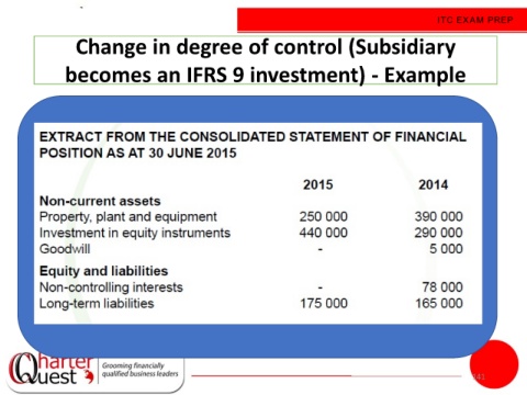 ITC EXAM PREP Change in degree of control (Subsidiary becomes an IFRS 9 investment) - Example 141