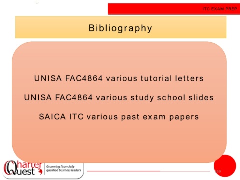 ITC EXAM PREP Bibliography UNISA FAC4864 various tutorial letters UNISA FAC4864 various study school slides SAICA ITC various past exam papers 159