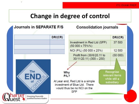 ITC EXAM PREP Change in degree of control 27