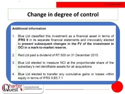 ITC EXAM PREP Change in degree of control 50