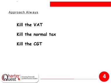 Approach Always Kill the VAT Kill the normal tax Kill the CGT 4