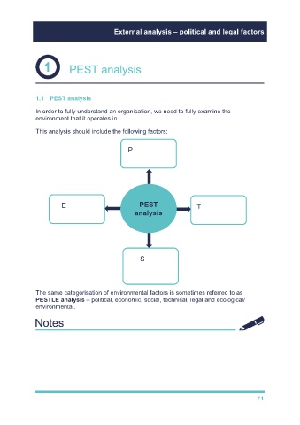 PESTLE analysis – political, economic, social, technical, legal and ecological/