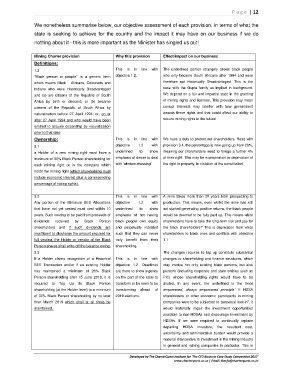 of 30% Black Person shareholding by no later 2019 elections. shareholders or other economic participants in mining