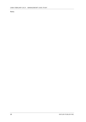 CIMA FEBRUARY 2019 – MANAGEMENT CASE STUDY Notes: 12 KAPLAN PUBLISHING