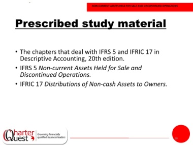 • The chapters that deal with IFRS 5 and IFRIC 17 in
