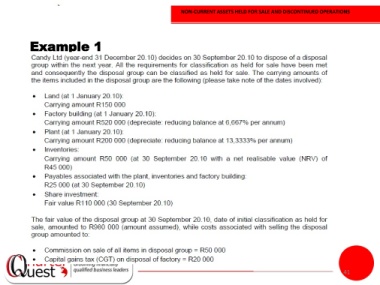 NON-CURRENT ASSETS HELD FOR SALE AND DISCONTINUED OPERATIONS Example 1 41