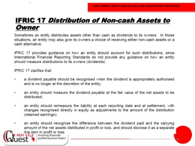 NON-CURRENT ASSETS HELD FOR SALE AND DISCONTINUED OPERATIONS IFRIC 17 Distribution of Non-cash Assets to Owner 66