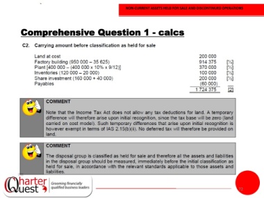 NON-CURRENT ASSETS HELD FOR SALE AND DISCONTINUED OPERATIONS Comprehensive Question 1 - calcs 72