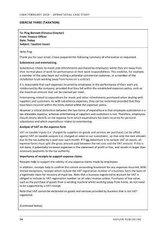 CIMA FEBRUARY 2019 – OPERATIONAL CASE STUDY