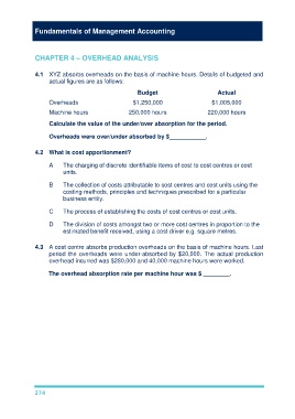 4.1 XYZ absorbs overheads on the basis of machine hours. Details of budgeted and