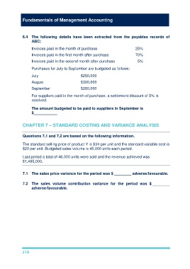 CHAPTER 7 – STANDARD COSTING AND VARIANCE ANALYSIS
