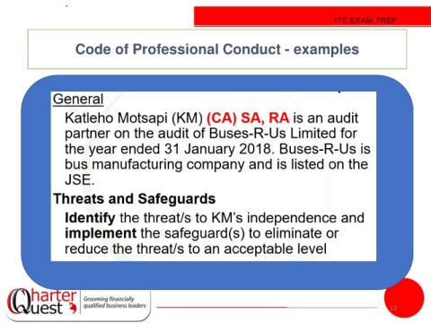 ITC EXAM PREP Code of Professional Conduct - examples 12