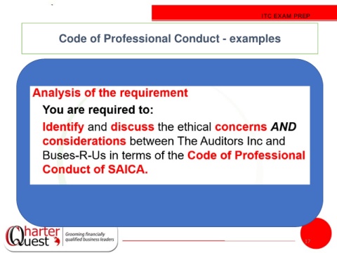 ITC EXAM PREP Code of Professional Conduct - examples 17