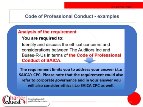 ITC EXAM PREP Code of Professional Conduct - examples 20
