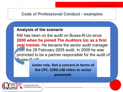 ITC EXAM PREP Code of Professional Conduct - examples 21