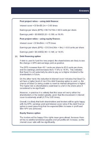 with the EPS, earnings yield and interest cover ratios if the debt finance