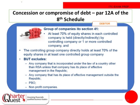 ITC EXAM PREP Concession or compromise of debt – par 12A of the 8 Schedule th 119