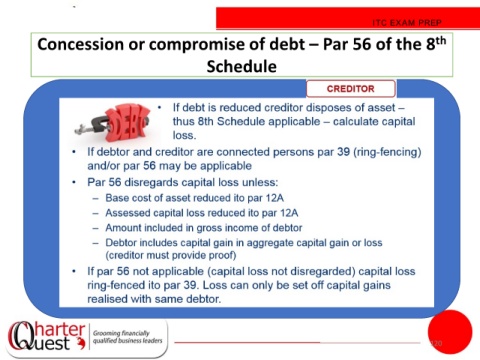ITC EXAM PREP Concession or compromise of debt – Par 56 of the 8 th Schedule 120