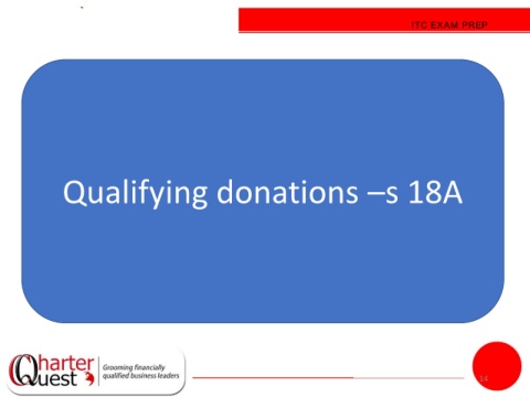 ITC EXAM PREP Qualifying donations –s 18A 14