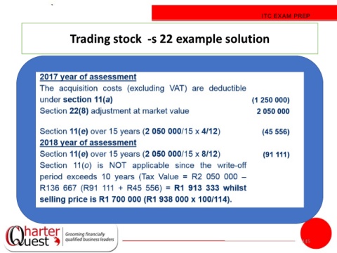 ITC EXAM PREP Trading stock -s 22 example solution 145