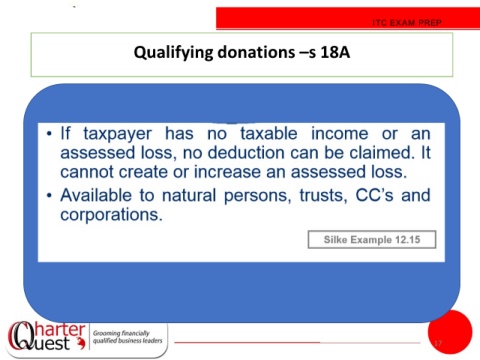 ITC EXAM PREP Qualifying donations –s 18A 17
