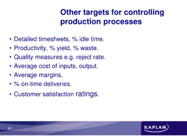 • Productivity, % yield, % waste.