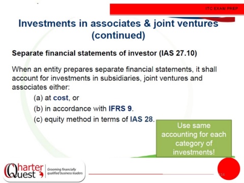ITC EXAM PREP Accounting for Investments in Associates/JV per Entity 114