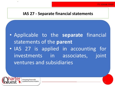 • IAS 27 is applied in accounting for