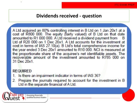ITC EXAM PREP Dividends received - question 21
