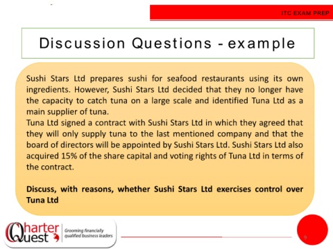 Discuss, with reasons, whether Sushi Stars Ltd exercises control over