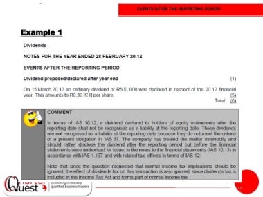 EVENTS AFTER THE REPORTING PERIOD Example 1 169