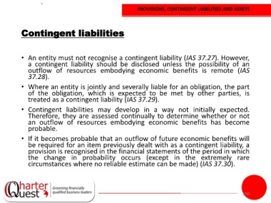 • Contingent liabilities may develop in a way not initially expected.