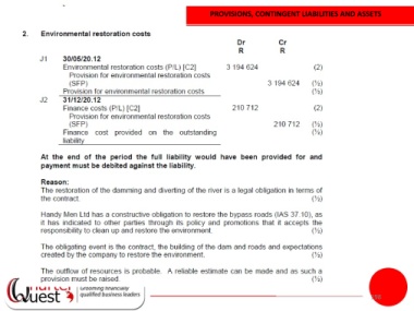 PROVISIONS, CONTINGENT LIABILITIES AND ASSETS Example 1 198