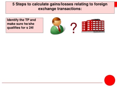 5 Steps to calculate gains/losses relating to foreign exchange transactions: Identify the TP and make sure he/she qualifies for s 24I ?