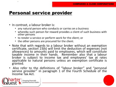 • Also refer to the definitions of “labour broker” and “personal